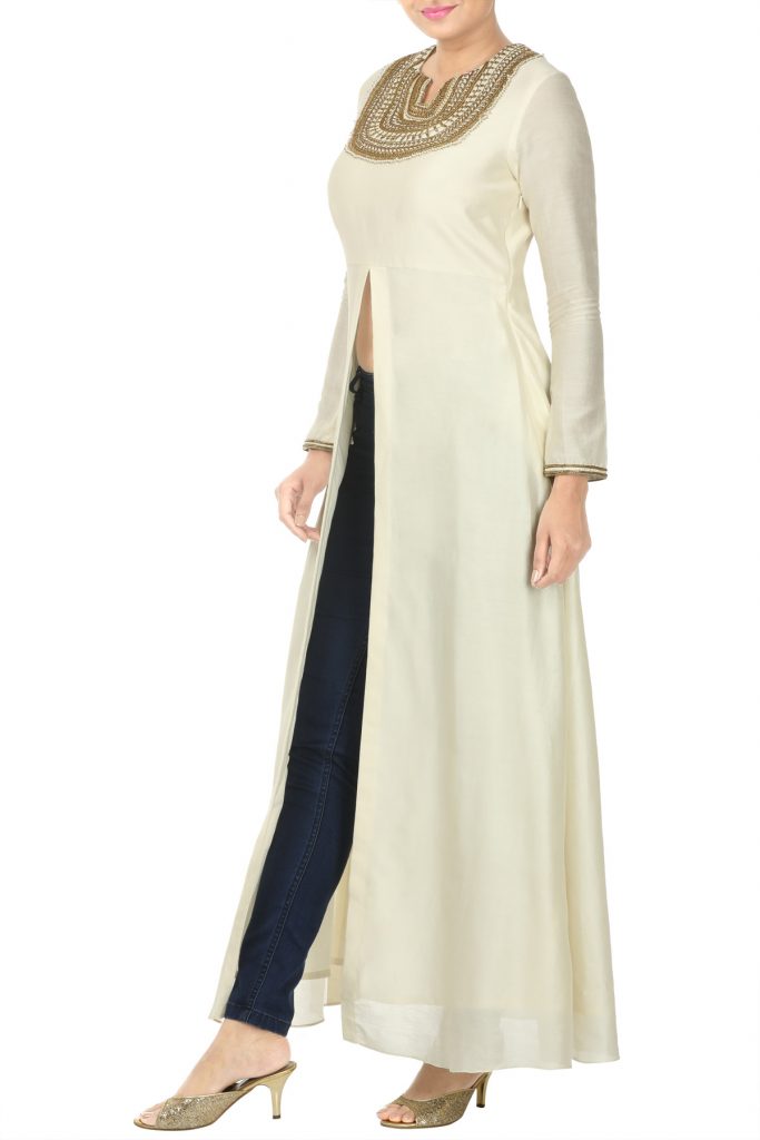 What would be your go-to wear if you are invited to a cultural party hosted by your co-workers? You wouldn’t want to wear those heavy worked lehengas or traditional sarees & look out of the place. So for you, here’s a style that reflects culture, comfort and trend– a slit kurti!
