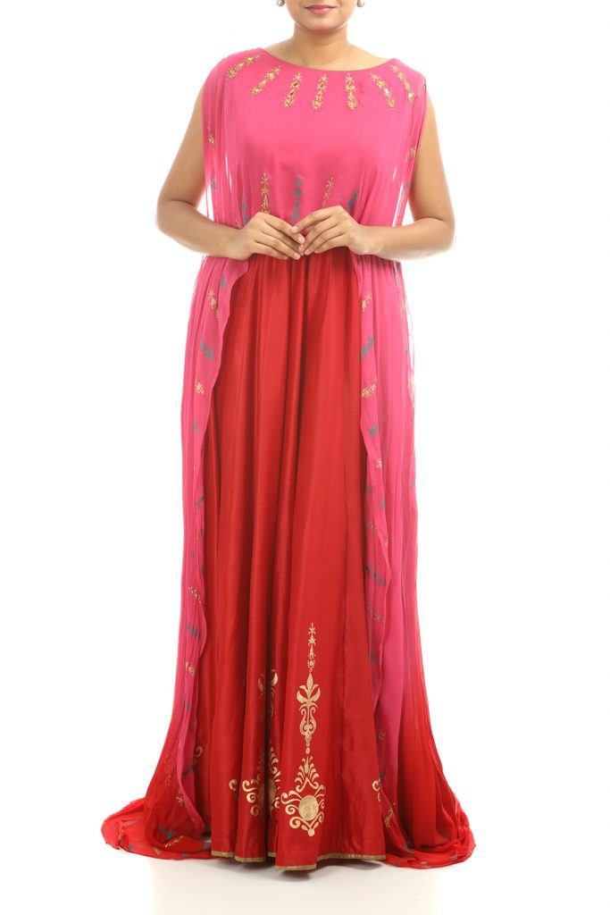 If you want to follow the tradition of wearing a dupatta without looking too desi, then a cape dupatta is a style you must try! This style makes it look as if you are wearing a cape top rather than a dupatta. If you are hesitant about the overall visual appeal, then check out this garment at TheHLabel.