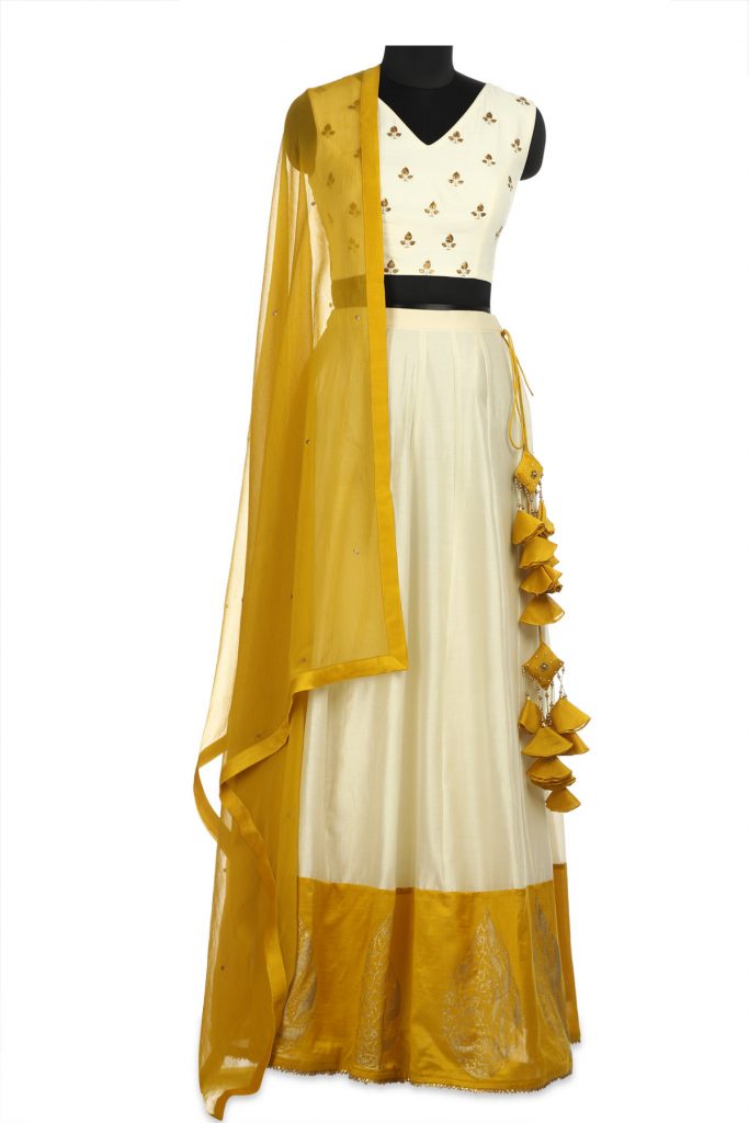 Ivory-White & Ochre-Yellow Lehenga