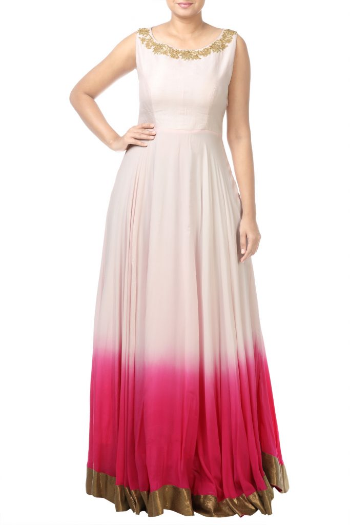 Whether you love to splash a lot of colour or not, this dress is just enough to keep you drenched in the colourful spirit of the festival. Made from the georgette fabric in an ombre of pinks, this dress is light-weight, easy to carry and indeed a water-friendly outfit for the day.